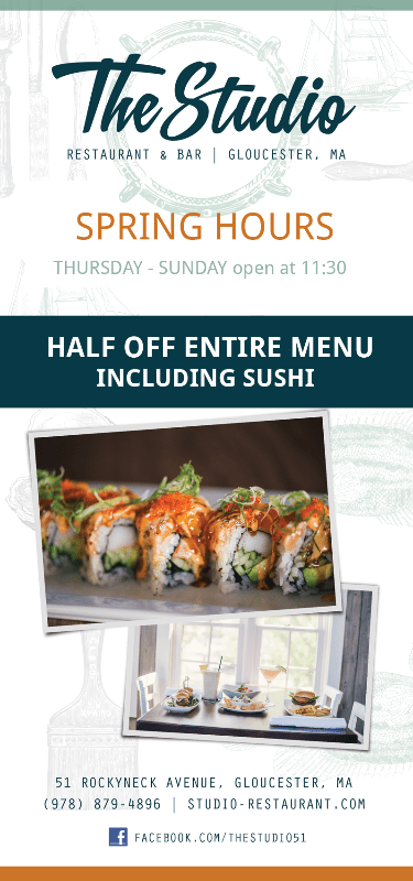 Studio Spring Hours and Half Off Entire Menu Including Sushi